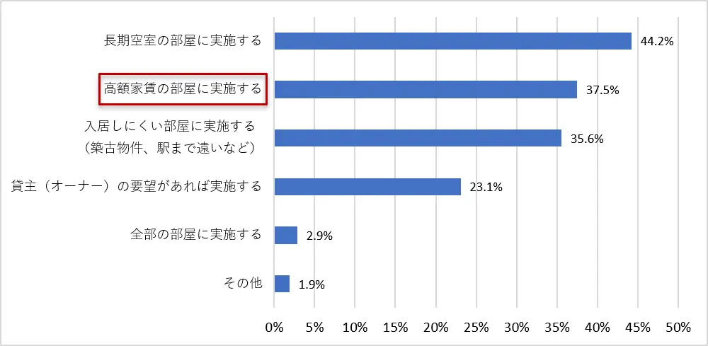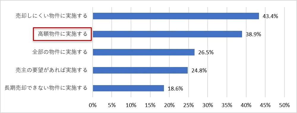 3.ホームステージング実施基準:売却しにくい物件、長期空室の賃貸物件が最多回答
