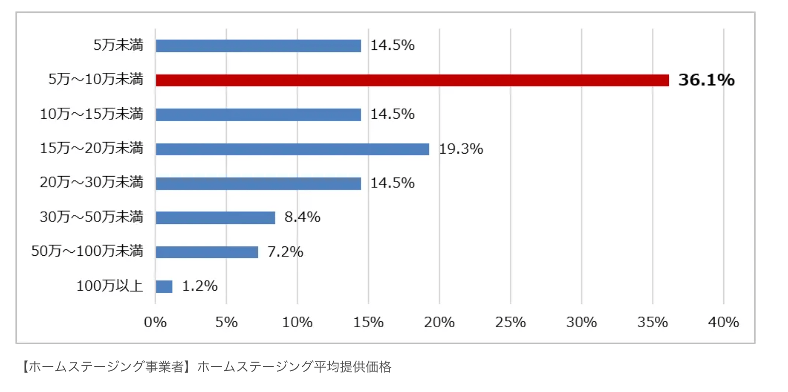 8.ホームステージング平均提供価格:5~10万円未満が最多(専門業者の提供価格)