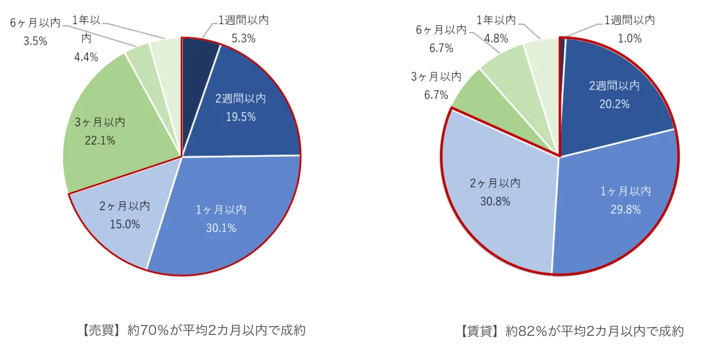 5.ホームステージング後成約までの平均期間:売買約70%、賃貸約82%が2カ月以内