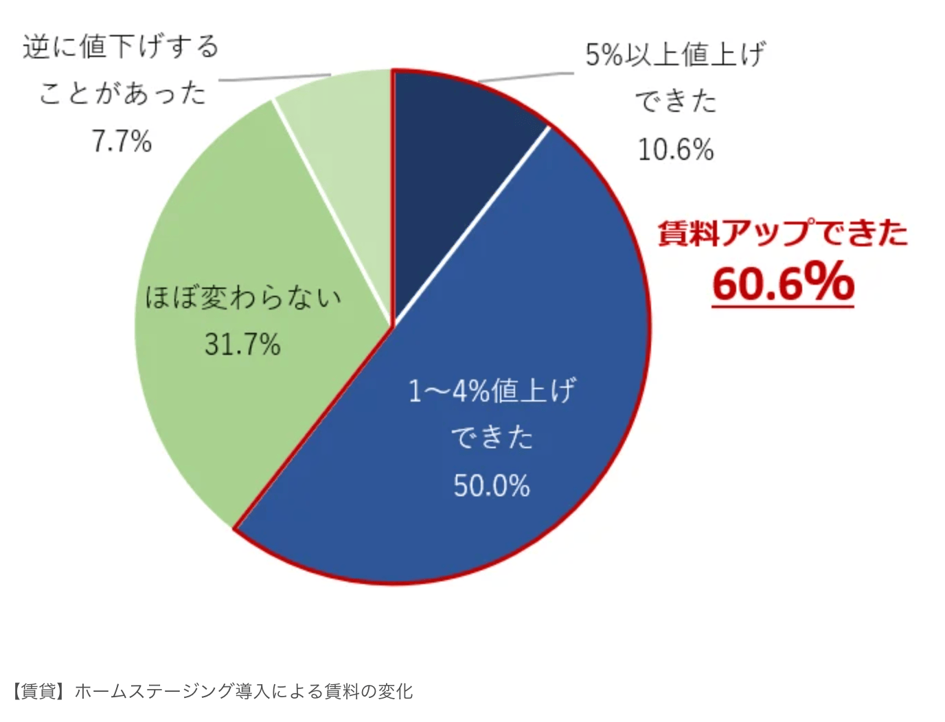 ホームステージング導入により6割超が賃料を上げても成約に至ったと回答しています。