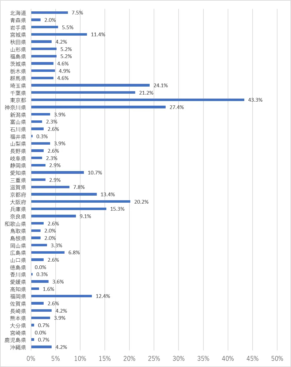 コロナ禍の収束と共に、東京の人口が一極集中し、それに伴い住宅需要の高まりによって、東京におけるホームステージングの実施が昨年よりも7.1%と大きく増加しています。東京以外の地域については、昨年の状況と大きな変化はなく、首都圏を中心にホームステージングが実施されています。住宅需要が高く競争の激しいエリアで、物件の印象が成約に大きく影響するホームステージングの有効性が認識されていると推測されます。