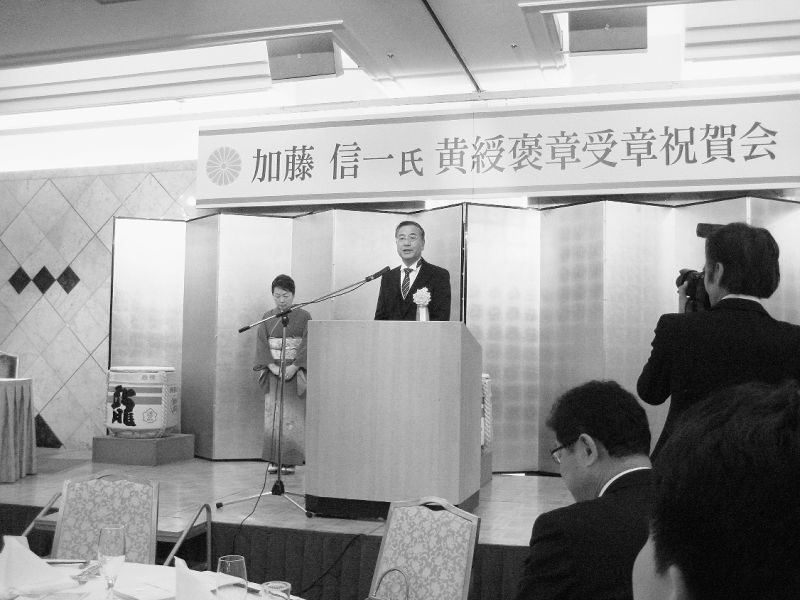 加藤信一氏の黄綬褒章 230人が受章を祝福