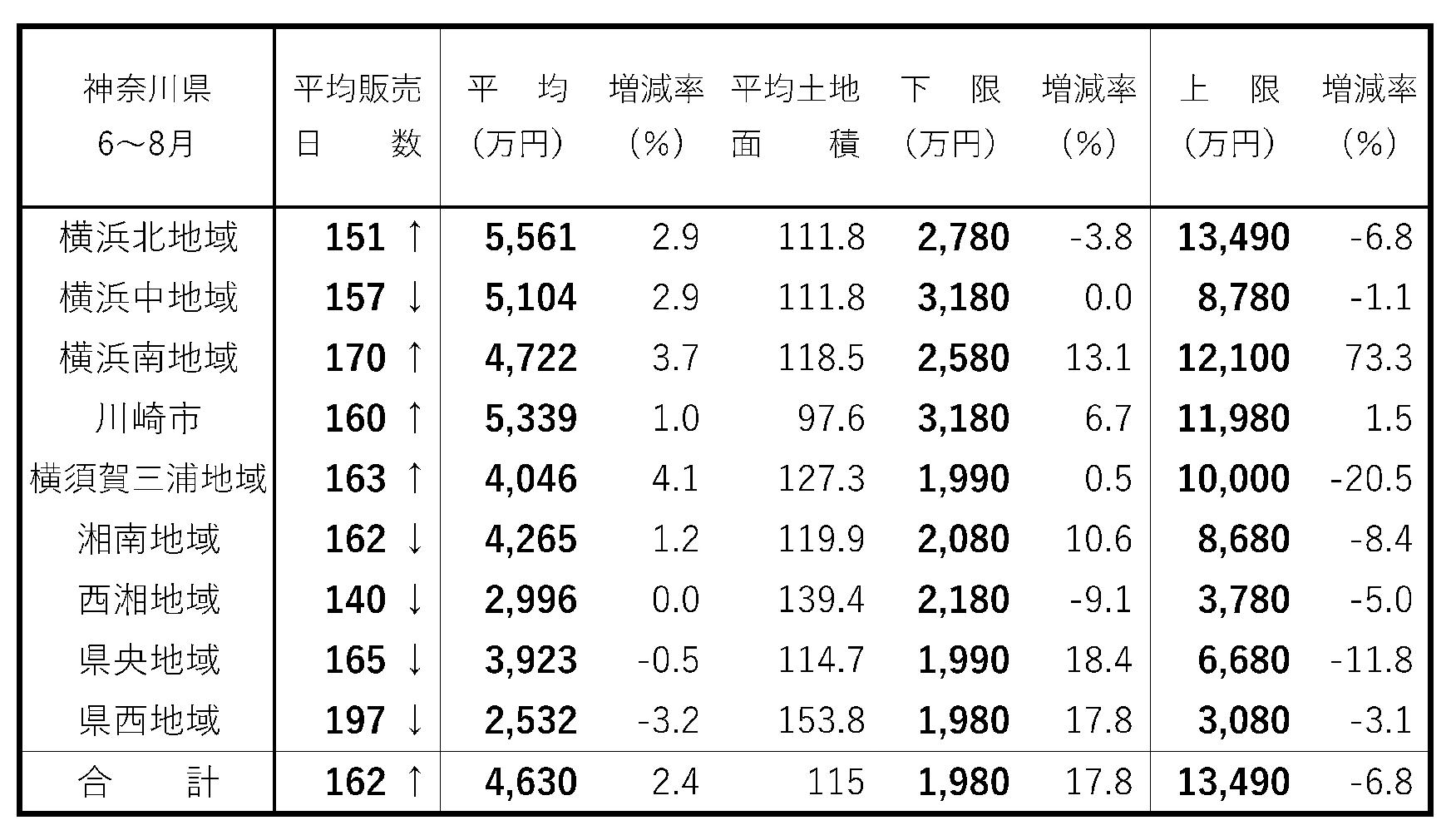 住宅新報 9月30日号 お気に入り神奈川県主要地域6~8月期・新築戸建ての成約棟数は1950件(前四半期3~5月期比9.2%減)。横浜北(同0.3%増)、横浜南(4.7%増)、県西(同25%増)のほかは川崎(同15.3%減)、横須賀三浦(同27.2%減)、湘南(同14.3%減)など6(続く)