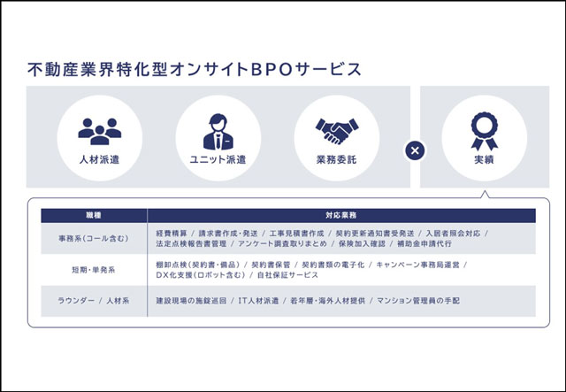 綜合キャリアオプションが提供 不動産業特化型オンサイト 現地で事務代行を遂行
