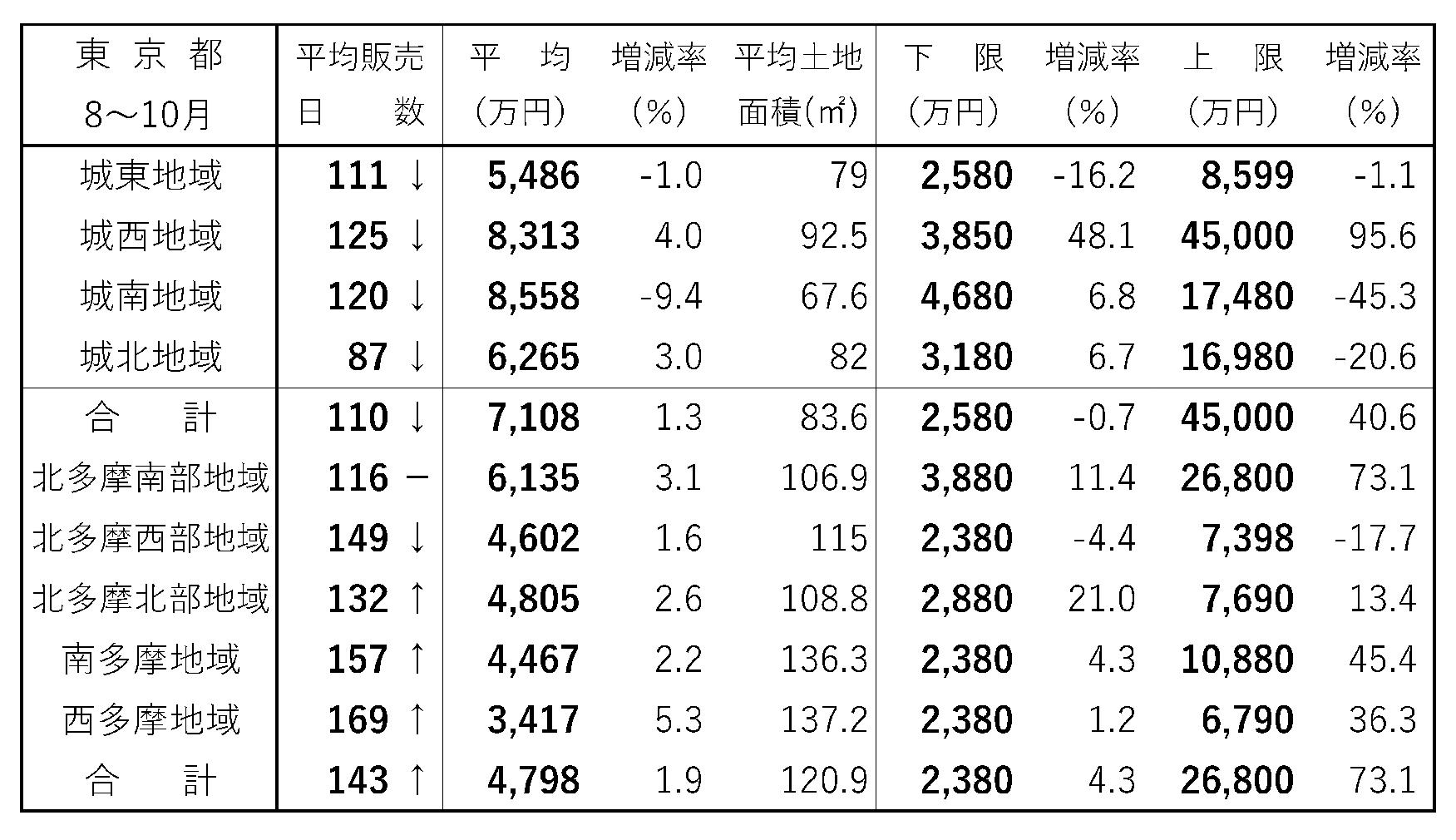 首都圏・新築戸建て成約動向 武蔵野市吉祥寺南町で上限2億6800万円 東京都 建て売り販売日数 8~10月