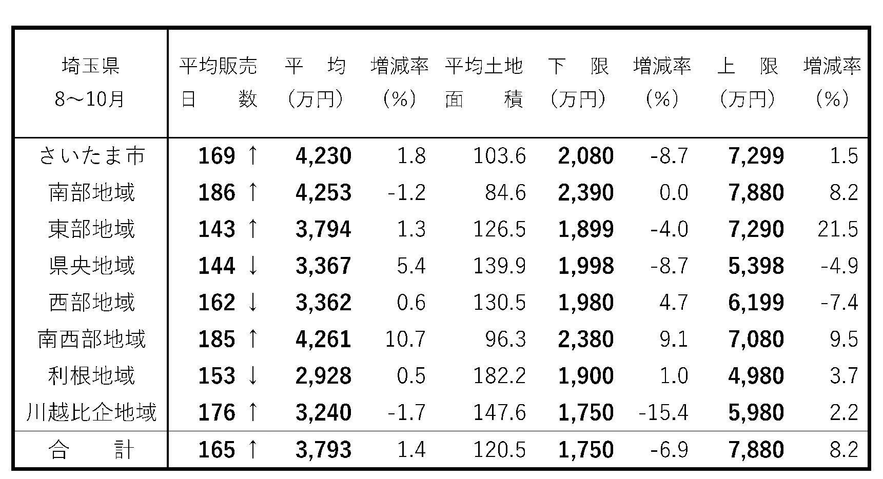 首都圏・新築戸建て成約動向 成約棟数は7地域で減少 埼玉県 建て売り販売日数 8~10月
